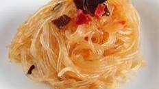 Cellophane noodles are a type of transparent noodle made from starch and water. They are generally sold in dried form, soaked to reconstitute, then used in soups, stir fried dishes, or spring rolls.Wikipedia