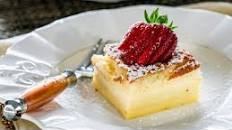 Directions: Preheat the oven to 325°F. Lightly butter or grease a 8"x8" baking dish. Melt the butter and set aside to slightly cool. Whip the egg whites and vinegar to stiff peaks. Beat the egg yolks and sugar until light. Mix in the flour until evenly incorporated. Fold in the egg whites, 1/3 at a time.